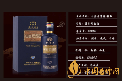 不僅僅是酒好,53度白金老醬酒藍(lán)鉆石,包裝更是高端大氣,烤瓷瓶身,質(zhì)感細(xì)膩,燙金文字,精細(xì)工藝。匠師手作,盒型精美,精美禮盒,大氣尊貴。。好禮伴手提,予之我心意。每箱配送3個手提袋,讓您商務(wù)贈送有面子,宴請貴賓上檔次,自飲尊享更健康。 白金老醬酒藍(lán)鉆石,是白金酒打造的一款高端白酒,市場零售價(jià)格稍高。
