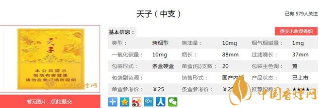 中支煙,是時(shí)下較為流行的一種卷煙規(guī)格,時(shí)尚、高檔是目前大家對(duì)中支煙的普遍印象,天子新推出了一款新品天子(中支),采用了天子專線,工藝和用料都非??季?,絕對(duì)可以稱得上是匠心鍛造、精工細(xì)作。天子中支傳承了天子品牌的華麗外觀及高端品質(zhì),更具有純正的中國(guó)韻味和中國(guó)范兒,堪稱中支煙新典范。下面就由香煙網(wǎng)小編帶大家一起來(lái)了解天子中支的相關(guān)信息。