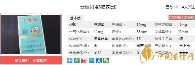 云煙小熊貓家園煙支長88mm,小熊貓家園的卷接裝材料科技感十足。研發(fā)者們采用了先進(jìn)的接裝紙涂布技術(shù),獨(dú)具匠心地在濾棒接裝紙上添加了氨基酸,經(jīng)過處理之后的濾棒接裝紙能讓小熊貓家園的煙支散發(fā)出更柔和的煙氣。下面我們一起來看云煙小熊貓家園的參數(shù)信息:焦油量:10mg 煙堿量:1.0mg 一氧化碳量:11mg