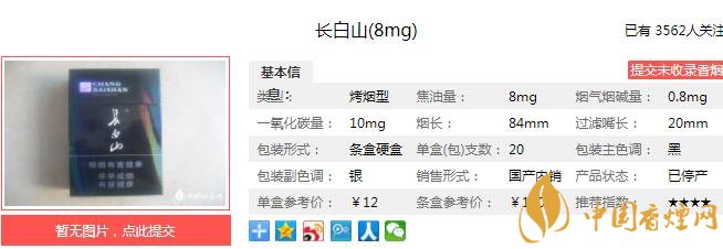 以上便是由香煙網(wǎng)小編為大家介紹的關(guān)于長(zhǎng)白山8mg價(jià)格及參數(shù)介紹 長(zhǎng)白山8mg獨(dú)家口感分析的相關(guān)信息,想要了解更多有關(guān)內(nèi)容請(qǐng)點(diǎn)擊:御貓王道香煙怎么樣 煙草本香創(chuàng)造經(jīng)典吸食感受
