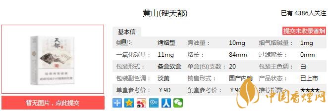 黃山硬天都加有獨具一格的石斛香珠,以其淡雅中藥之香,別于全開寬版式天都。難得的,是中藥之香與傳統(tǒng)的焦甜之香融和到位,充分協(xié)調(diào),不僅讓“黃山”品牌在文化上實現(xiàn)升級突破,而且給消費者帶來全新體驗,成為“黃山天都的特色之一。經(jīng)香煙網(wǎng)小編市場調(diào)查黃山硬天都售價為90元/包。
