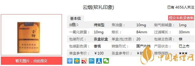 以上便是由香煙網(wǎng)小編為大家介紹的關(guān)于云煙軟禮印象怎么樣 云煙軟禮印象口感及參數(shù)介紹的相關(guān)信息,想要了解更多有關(guān)內(nèi)容請點擊:黃金葉天韻多少錢一包 黃金葉天韻口感及參數(shù)分析