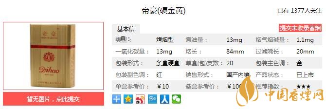 以上便是由香煙網(wǎng)小編為大家介紹的關(guān)于帝豪硬金黃好抽嗎 帝豪硬金黃價(jià)格及參數(shù)介紹的相關(guān)信息,想要了解更多有關(guān)內(nèi)容請點(diǎn)擊:黃山詩城口感怎么樣 黃山詩城紀(jì)念馬鞍山建市60周年