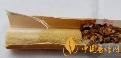 濾嘴是普通的土黃色雪花點(diǎn)水松紙,能看到水松紙上一圈粗粗的降焦孔,從位置看,應(yīng)該是開在了濾嘴的中段偏下位置。不出預(yù)料的話,濾嘴也應(yīng)該是一段式的醋酸纖維絲束,待會剖開看看就知道了。