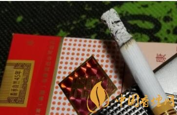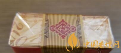 煙封的中間,頂部,變形的中國(guó)結(jié)中有45字樣。