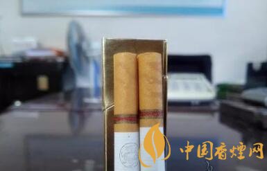 又是款淺金色調(diào)為主、修飾以深色金邊框的包裝設(shè)計,有些像芙蓉王硬黃的造型。圓圈中的金龍造型,更像是抽象畫法的,沒有真龍或者其它帶有龍的圖案香煙的豐滿與霸氣。