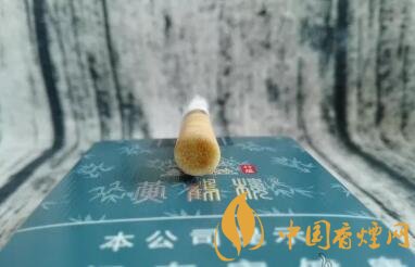 煙支的整體長度是74mm,過濾嘴長度是32mm。鵝黃色過濾嘴紙張上,也印制著竹葉的圖案。7mm寬度的金圈上,黃鶴樓的字樣看不太清晰。嗅聞煙支,味道很淡。