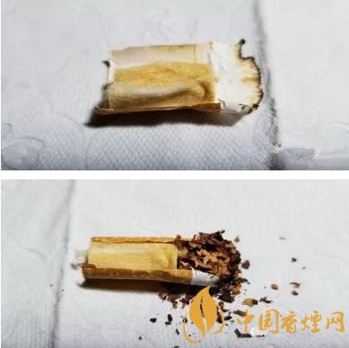 剖開(kāi)濾嘴,絲束整段顏色偏黃,撕開(kāi)絲束,內(nèi)部顏色均勻,煙氣的流速一直算比較恒定可控。煙氣的風(fēng)味恒定也來(lái)源于此。