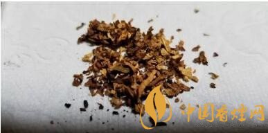攤開(kāi)煙絲,明黃的烤煙和暗棕的晾煙比例基本接近1:1。有切得很細(xì)碎的煙梗交雜其間。烤煙比例比摩洛哥版本要略高一些。