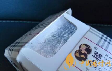 煙盒的高度是97mm。正反兩面的圖案設(shè)計(jì)相同,都是有如床單或者臺(tái)布樣式的畫面。九宮格樣式的中間,印制有金橋品牌香煙的LOGO,以及英倫奶香的名稱。從警示語(yǔ)句內(nèi)容來(lái)看,是大字版本初期款,2016年10月改版前的款式。