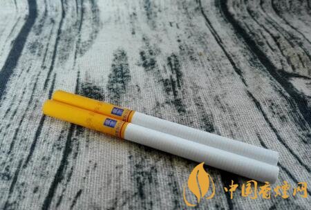 撕掉錫紙,露出的煙支過濾嘴同樣是杏黃色調(diào),相比于細支規(guī)格的要重一些。兩排清晰的降焦線,印制于過濾嘴的中間部位。