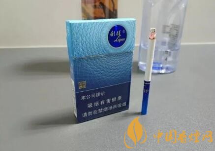 看包裝,煙盒的正面通體以藍(lán)色為主色調(diào),整體的色彩仍然維持著“利群”系經(jīng)典的三段式設(shè)計(jì),顏色從上至下逐漸加深。上段為小翻蓋,在小翻蓋的右側(cè)是一個(gè)直徑約為18MM的圓形標(biāo)志,圓形標(biāo)志的主色調(diào)為寶藍(lán)色,里面是利群的漢字和漢語拼音,圓形的輪廓和字體的顏色為金色。