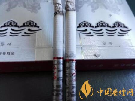 “隨溫而變,忽隱忽現(xiàn)”。兩款版本的煙盒側(cè)面,均印制上了這8個(gè)字。具體指的,就是在吸食過(guò)程中,如果微用力濃吸煙霧,煙支水松紙上的紋飾圖案顏色,會(huì)由深變淺,直至消失不見(jiàn)。而過(guò)了一會(huì)兒,圖案顏色又會(huì)如初般地顯現(xiàn)出來(lái)。