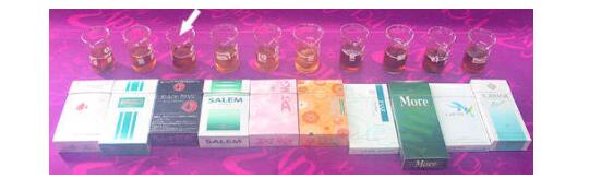 在主流煙氣的氣相物中,最主要的有氮、氧、二氧化碳、一氧化碳和氫。這5種氣體約占總氣相物的90%,占總煙氣釋放量的85%左右。除此之外,還有一些其它化學(xué)成分。其中最主要的有害成分就是煙堿(尼古丁),焦油,一氧化碳。接下來就讓我們對(duì)這幾種有害物質(zhì)進(jìn)行評(píng)測(cè)。