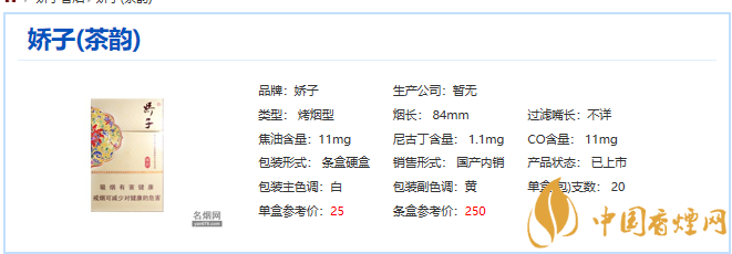 嬌子(茶韻)有一股淡淡的清香,可以舒緩吸煙者的心情!如果喜歡帶點香氣的煙的人可以考慮下此款產(chǎn)品!不過再清香的香煙都是含有尼古丁的,所以吸煙愛好者切勿上癮哦!