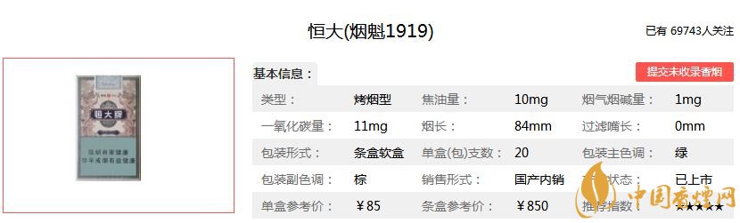 恒大(煙魁1919)煙(俗稱:Hengda Yankui 1919)是上海煙草集團有限責任公司旗下品牌恒大香煙推出的一款焦油含量10mg的烤煙型香煙。
