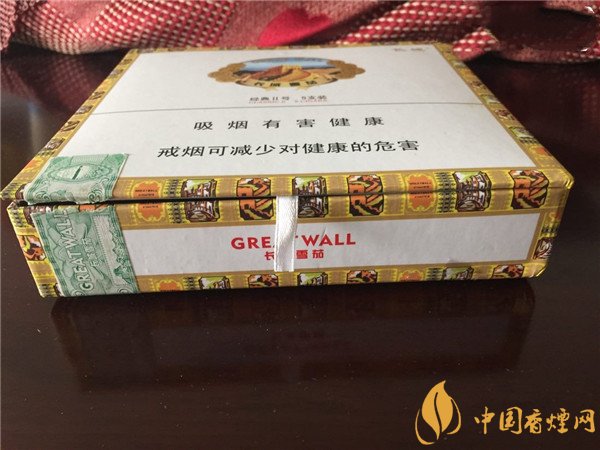 長城經(jīng)典2號外觀簡約素雅,但透出高檔品質(zhì)的貴氣。主色系為純白色,輔助色系為黃色,金黃色的印花鑲邊設(shè)計最為巧妙,印花鑲邊點綴將盒子的外觀提升了好幾個檔次。長城LOGO設(shè)計是長城系列一貫的風格,天空藍與黃色系的長城融合得十分協(xié)調(diào)。外觀上論這款長城雪茄煙怎么樣,個人感覺簡約中顯其雍容華貴。
