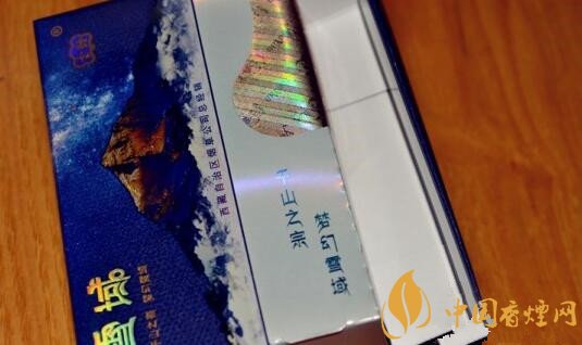 我們?cè)谡f云煙雪域怎么樣的時(shí)候,它的外觀也是非常有特色的。云煙雪域整體配色為藏青色,首先進(jìn)入眼簾的便是一座雪山聳立云端之上,帶有一些藏文色彩的雪域兩字被印在煙盒左上角,下面連帶兩排小字:千山之宗,夢(mèng)幻雪域,令人心向神往,背面的圖案則是一眾群山,中間像是一個(gè)畫框,整體感覺非常新穎。
