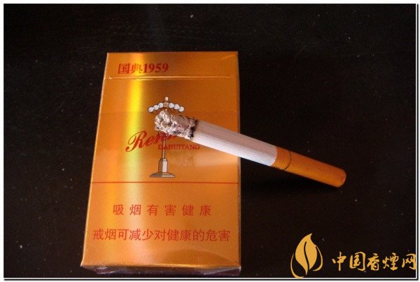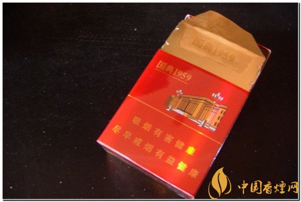 人民大會(huì)堂國典1959外包裝色調(diào)呈現(xiàn)為雙色系,一面為鮮紅色,另一面為金黃色。在正面的開盒的部位上有著金色的 “人民大會(huì)堂”字樣。煙盒的中間部分略上是“國典1959”,接著是人民大會(huì)堂圖案。煙盒的下部分是警示語言,“吸煙有害健康,盡早戒煙有益健康”。 該款香煙的煙盒背面是金黃色調(diào),上部分是也就是煙盒的左上角是“國典1959”,煙盒的正中是天安門禮燈圖案。