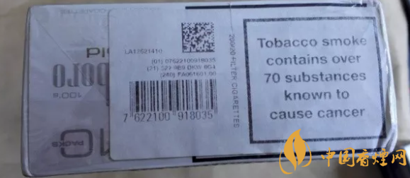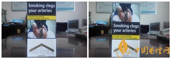 警示圖片的內(nèi)容,與84S紅或白等相同。從樣式上可以看出,它也是一款新版萬寶路。與84S系列相同的,是因?yàn)樽屛挥诰緢D片,黑框警示英文字句,轉(zhuǎn)而移到煙盒的左右側(cè)面。#p#副標(biāo)題#e#