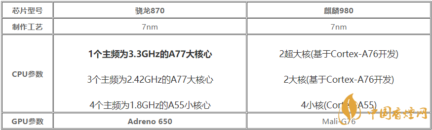 全新的工藝可以帶來20%的性能提升以及40%的功耗下降,同時(shí)980還會(huì)使用A77四大核+A55四小核的架構(gòu)