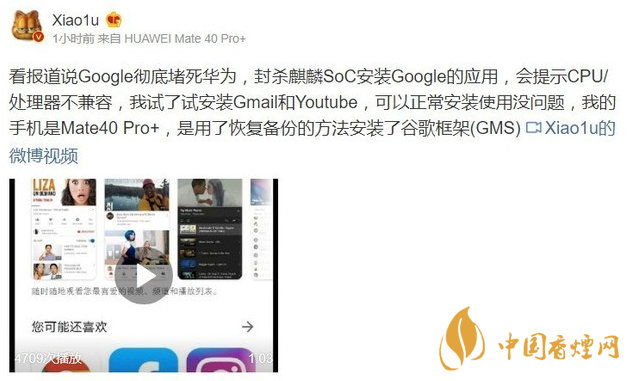 為了驗證這個消息的真實性,數(shù)碼大V Xiao1u驗證了自己的華為Mate40 Pro手機,嘗試安裝Gmail、Youtube都沒問題。即便是國外網(wǎng)友爆料中的谷歌地圖應用,Mate40 Pro安裝也沒問題,他表示這可能是下載的APK有問題。