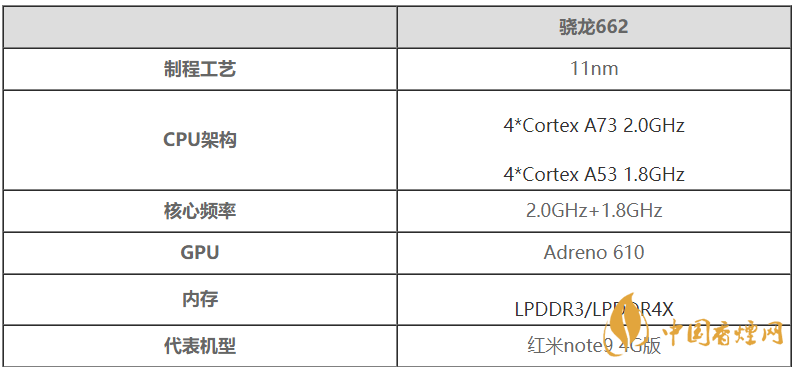 驍龍662沿用11nm制程工藝,采用4*Cortex A73 2.0GHz+4*Cortex A53 1.8GHz八核設計,并且同樣維持Kryo 260架構(gòu)。
