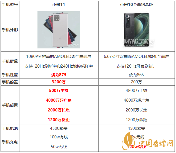 對于即將到來的小米11,大家都十分期待,對于小米11和小米10至尊紀(jì)念版哪款手機(jī)更值得入手?今天香煙網(wǎng)小編為大家?guī)碜钚碌男∶?1和小米10至尊紀(jì)念版的參數(shù)對比,為大家?guī)碜顬樵敿?xì)的參數(shù)評測,對此感興趣的小伙伴,快來看看吧。