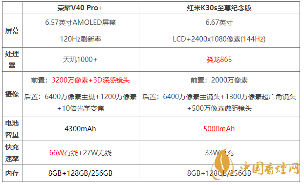 紅米k30s至尊紀念版這款手機可是有著非常強大的性能,驍龍865的處理器配上超大的電池容量和電競屏般的刷新率絕對是用戶入手的最佳選擇。以上就是香煙網(wǎng)小編為大家介紹的榮耀v40pro+和紅米K30s至尊紀念版參數(shù)對比的相關(guān)內(nèi)容了,希望對大家在選擇時有所幫助。了解更多實用手機相關(guān)咨詢,請關(guān)注香煙網(wǎng)。