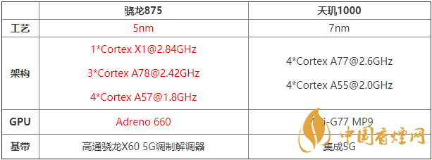 驍龍 875,采用了5nm制程工藝,天璣 1000,由7nm的工藝打造。