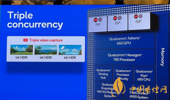 驍龍888移動(dòng)平臺(tái)內(nèi)封裝全新的Qualcomm Spectra 580 ISP,也就是圖像信號(hào)處理模塊,該模塊實(shí)際上共有三個(gè)ISP(上代是兩個(gè)),能夠以每秒處理27億像素的速度,支持三個(gè)攝像頭的并發(fā)拍攝。