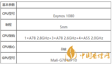 三星Exynos1080的CPU采用了“1*A78(2.84GHz)+3*A78(2.6GHz)+4*A55(2.0GHz)”八核心架構(gòu),GPU是Mail—G78(10核)。