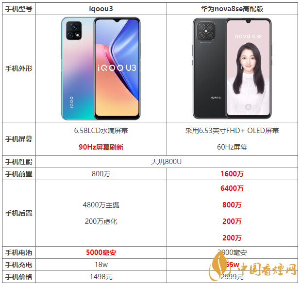 iqoou3和華為nova8se高配版哪個(gè)更好?那么這兩款手機(jī)在參數(shù)上有什么區(qū)別?哪款手機(jī)更值得入手?接下來(lái)香煙網(wǎng)小編為大家?guī)?lái)iqoou3和華為nova8se高配版這兩款手機(jī)對(duì)比,感興趣的朋友一起來(lái)看看吧!