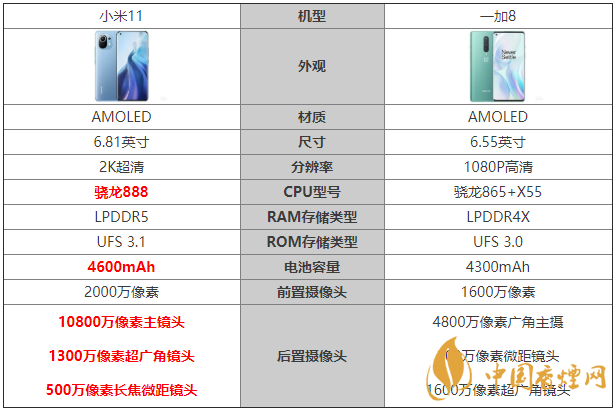 小米11發(fā)布了,目前售價(jià)是3999。那么跟它同價(jià)位的一加8相比哪款手機(jī)有什么區(qū)別呢,哪款更好更值得用戶選擇入手呢,下面香煙網(wǎng)小編就為大家?guī)?lái)小米11和一加8相關(guān)的對(duì)比說(shuō)明,一起來(lái)看看吧,不要錯(cuò)過(guò)了哦。