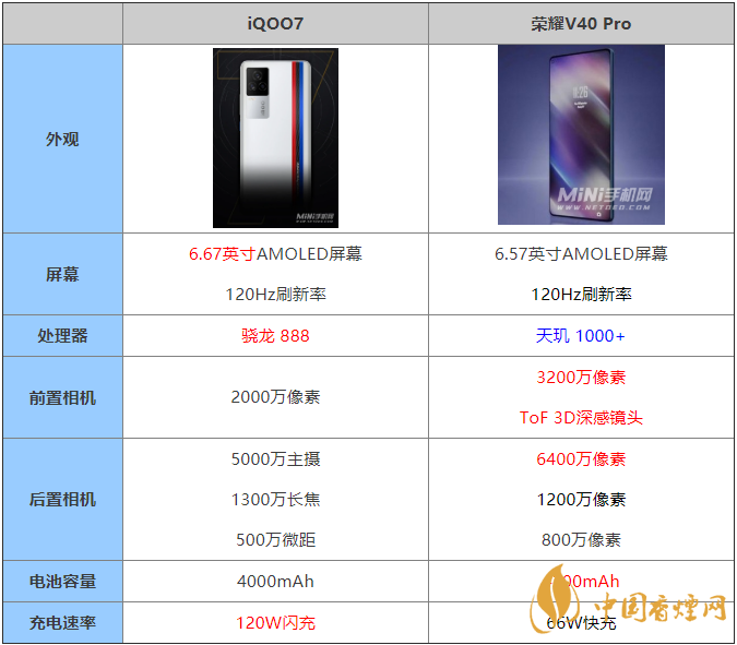 榮耀V40Pro和iQOO7有什么區(qū)別-參數(shù)對比