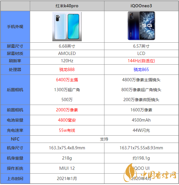 紅米k40pro這款手機可將會是最為便宜的驍龍888手機,那么這款手機和iQOOneo3相比較的話到底是誰占有著更加優(yōu)秀的性能表現(xiàn),哪款手機更值得入手?下面香煙網(wǎng)小編將為大家介紹這兩款手機的參數(shù)對比情況,感興趣的朋友一起來看看吧!