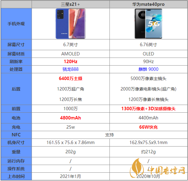 三星s21+和華為mate40pro哪款手機(jī)更好?三星s21+和華為mate40pro兩款非常熱門(mén)的旗艦手機(jī),那么小伙伴們要在其中選擇一個(gè)的話,到底是要如何選擇呢?下面香煙網(wǎng)小編將對(duì)三星s21+和華為mate40pro參數(shù)對(duì)比進(jìn)行介紹,一起來(lái)看看吧!