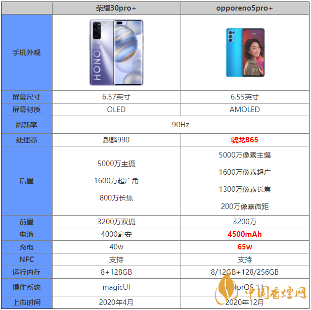 =opporeno5pro+和榮耀30pro+都是大家十分關(guān)注的手機(jī),那么這兩款手機(jī)的區(qū)別是什么?哪款手機(jī)更好?哪款手機(jī)更值得入手?下面香煙網(wǎng)下?lián)苄【帪榇蠹規(guī)碜钚碌膐pporeno5pro+和榮耀30pro+參數(shù)對(duì)比,感興趣的朋友快來看看吧。