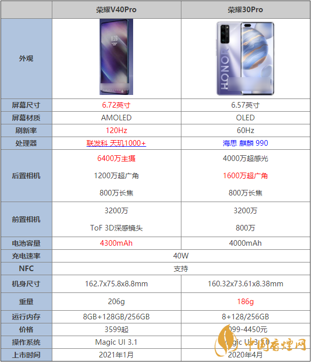 榮耀v40pro和榮耀30pro,兩款手機(jī)在配置上有一些相似之處,那么榮耀v40pro和榮耀30pro有什么區(qū)別,哪款手機(jī)更好,哪個(gè)更值得入手呢,接下來(lái)香煙網(wǎng)小編就為大家?guī)?lái)了詳細(xì)的參數(shù)對(duì)比,感興趣的朋友一起來(lái)看看吧!