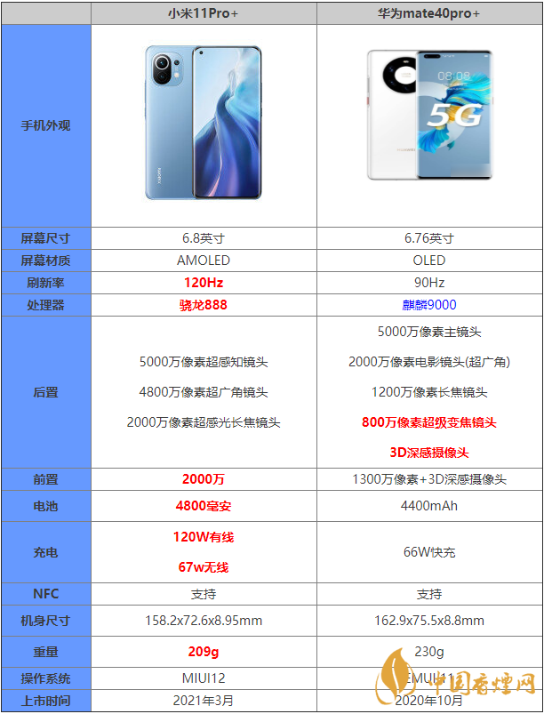小米11Pro+最為小米11系列中最高配的手機(jī)和之前的華為mate40pro+相比較的話到底是哪一款手機(jī)有著更加好的性能表現(xiàn),這兩款手機(jī)又什么區(qū)別?哪款手機(jī)更值得入手?下面香煙網(wǎng)小編將為大家?guī)?lái)小米11Pro+和華為mate40pro+參數(shù)對(duì)比,感興趣的朋友一起來(lái)看看吧!