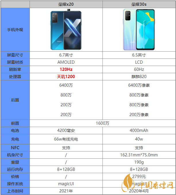 榮耀x20和榮耀30s這兩款手機都是大家十分關注的,那么榮耀x20和榮耀30s有什么區(qū)別?哪款手機更值得入手?下面香煙網小編為大家?guī)順s耀x20和榮耀30s參數對比,感興趣的朋友一起來看看吧!