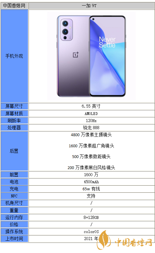 以上就是小編收集到的一加9t參數(shù)配置-一加9t性能分析的相關(guān)內(nèi)容,以上內(nèi)容均來源于網(wǎng)絡(luò),僅供參考,一切以實際為準(zhǔn),更多最新數(shù)碼資訊請關(guān)注香煙網(wǎng)。