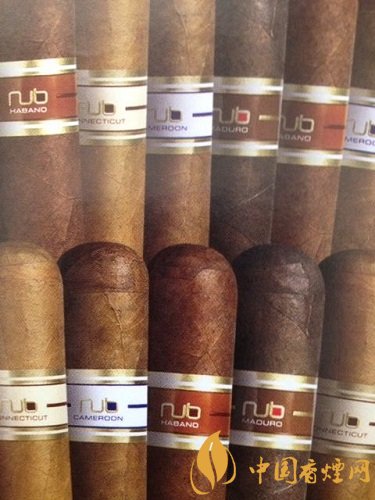 Nub雪茄命名方式非常直觀,所用的煙葉(系列)加上環(huán)徑就是雪茄型號(hào)的名稱。先是系列有喀麥隆、馬杜羅、康涅狄格、哈瓦那等,環(huán)徑又有56、58、60、64等,二者一結(jié)合就是名字,例如馬杜羅64。Nub雪茄值得嘗試的是他的大環(huán)徑雪茄,雪茄很短,屬于矮胖雪茄,味道非常直接,沖擊力夠,沒(méi)有一步步往上走的感覺(jué),而是一下子就到山頂。