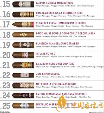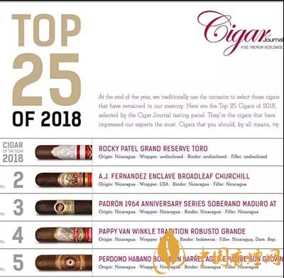 雪茄愛好者看過來,2018年雪茄排行榜來了!2018年排名前十的雪茄有哪些呢?《cigarjournal》組織了品鑒小組評(píng)選出2018年前25名雪茄,品鑒小組由來自世界各地的70名雪茄愛好者和專家組成,涵蓋各個(gè)年齡層的女性和男性。下面就由香煙網(wǎng)小編帶大家一起來了解一下2018年雪茄排行榜的相關(guān)信息。