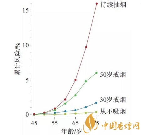 30 歲左右戒煙,死于肺癌概率不到 2%,即使 50 歲戒煙, 概率也不到 6%;即使老煙民,戒煙 10 年后,得肺癌的可能性依然會下降 50% 以上。