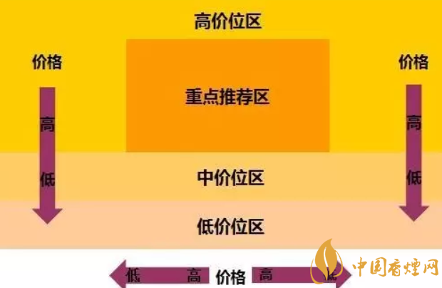 ②突出陳列原則:高價煙居中,高利潤居中,重點煙居中