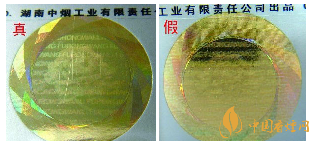②迎光觀察激光全息圖案:真品卷煙圖案內(nèi)拼音字母、芙蓉花及“芙蓉王”轉(zhuǎn)換不同角度,都會(huì)呈現(xiàn)不同圖案的切換,且層次清晰、字體完整;假冒卷煙無論如何轉(zhuǎn)換角度,都無法達(dá)到完美切換,字體模糊,圖案缺失嚴(yán)重。