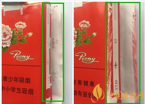 "牡丹"牌卷煙具有八十年的悠久歷史,是全國知名的暢銷牌號。"牡丹"牌卷煙系烤煙型卷煙,采用優(yōu)質(zhì)中、上等煙葉原料精心制造而成。包裝設(shè)計(jì)上采用傾城國色的牡丹花作為商標(biāo)主圖案,頗具神韻。該產(chǎn)品煙香濃郁,勁頭適中,余味舒適,適應(yīng)了廣大消費(fèi)者的口味。但市面上的假煙不少,下面就由香煙網(wǎng)小編帶大家來了解一下牡丹軟卷煙的真假鑒別方法,以下圖片均為左真右假。