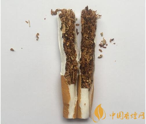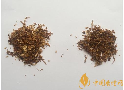 真品卷煙煙絲呈金黃色、絲條狀,香氣綿柔;假煙煙絲呈棕黑色,含末量大,香精氣味濃烈。
