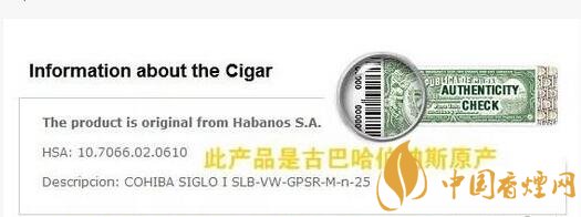 這個(gè)防偽標(biāo)簽永遠(yuǎn)是放在盒子正面的左下角,側(cè)面的的左上角。登陸古巴Hababos官網(wǎng),可以看到條碼查詢?nèi)肟?,輸入條碼編號(hào)可以查到這樣的結(jié)果: